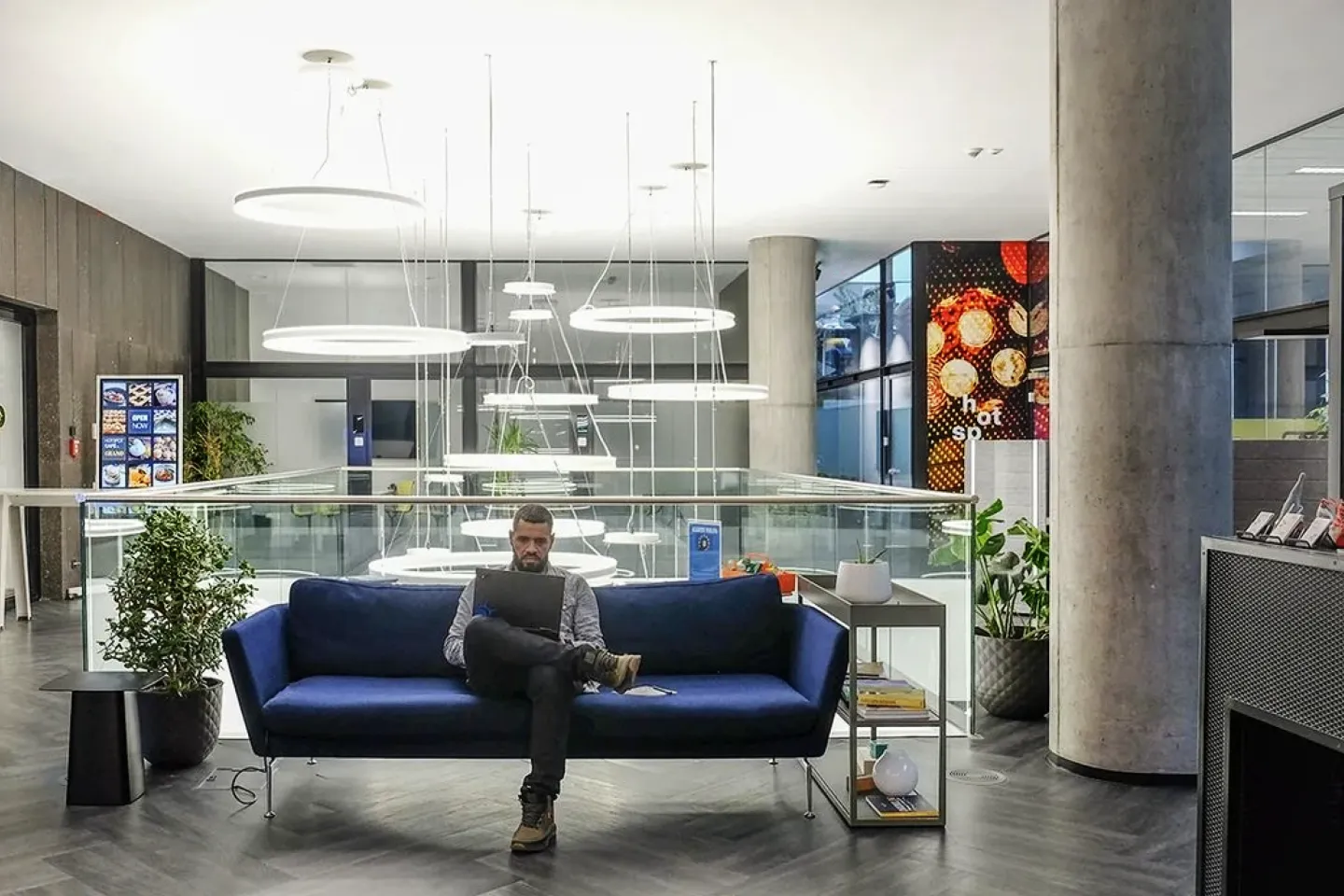 Spațiile de birouri cu un design unic, cafeneaua Hotspot și sala de conferințe transformă Worhub într-o experiență unică.